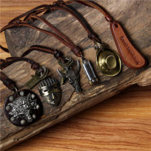 原创韩版复古文艺牛皮项链手工牛皮绳长款毛衣链情侣饰品配饰