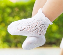 2017春夏秋款全棉柔软宝宝镂空网眼袜女童花边松口婴幼儿防滑棉袜