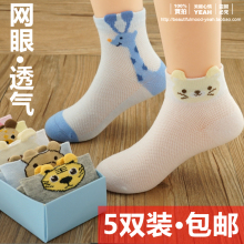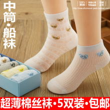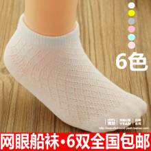春夏季薄棉儿童纯棉袜子男童女童浅口宝宝薄款大童无骨 网眼船袜