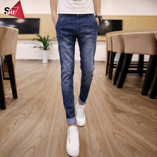 春季新款英伦男士九分牛仔裤男韩版潮学生青少年修身型小脚裤子男