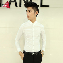 春季新款男士白衬衫男长袖修身小领寸衫韩版青年休闲衬衣潮流男装