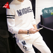 男生学生春季圆领卫衣男士套装韩版潮男套头运动外套男休闲棒球服