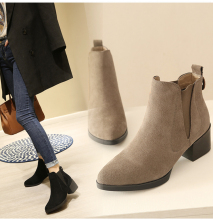 17春季真皮中跟粗跟短靴尖头马丁靴女牛皮高跟单靴女靴子裸靴女鞋