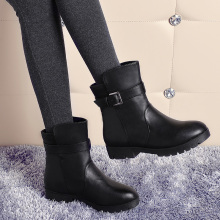 2016秋冬平底一脚蹬短靴女圆头皮带扣平跟粗跟女靴大码加绒女鞋子