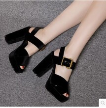 包邮2017夏季新款女鞋欧美时尚气质搭扣防水台超高跟粗跟女凉鞋