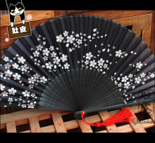 肚皮家樱花系列日式和风真丝渐变折叠扇子夏季女古典工艺舞蹈 S1