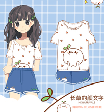 现货! 宅漫 长草颜团子颜文字表情 一字领露肩T恤短裤 动漫周边