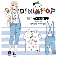 现货!长草颜文字/颜团子 连帽短袖卫衣 背带裤 动漫T恤周边 学院