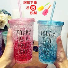 夏日冰杯渐变色双层水杯塑料杯学生随手杯吸管杯带盖创意杯子