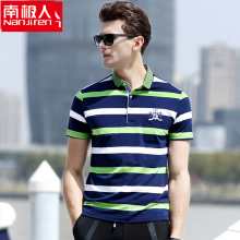 南极人2017新款春夏POLO衫男商务休闲修身条纹翻领青年透气t恤衫