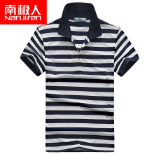 南极人宽松POLO体恤衫男夏季新款商务休闲棉制条纹抗皱青年T恤衫