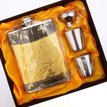 西派随身户外便携式男士不锈钢俄罗斯小酒壶8盎司金色包皮套装