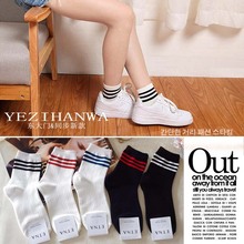 秋季新款韩国袜子女袜 三条杠女士短筒袜 日系原宿学院风纯棉短袜
