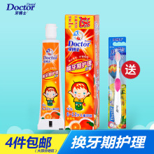 牙博士儿童牙膏牙刷家庭套装 护理牙齿牙龈含氟 草莓+香橙50g*4