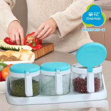 茶花调料盒玻璃调味盒套装无铅玻璃调料瓶佐料罐玻璃调料盒包邮