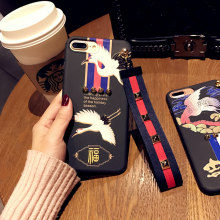 日韩浮雕苹果7plus手机壳带挂绳iPhone6s保护壳6plus全包硅胶套女