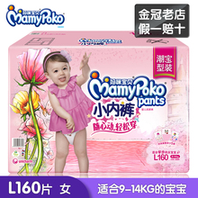 妈咪宝贝拉拉裤女L160片宝宝超薄纸尿裤婴儿干爽透气尿不湿小内裤