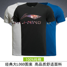 李宁短袖T恤男2017夏季大LOGO文化衫运动装棉T恤休闲上衣AHSH095
