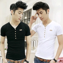 2017夏季T恤男韩版修身青少年t恤韩版修身上衣男装纯棉V领打底衫t