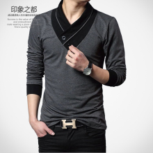 2016男士长袖t恤男上衣秋季新款韩版打底衫V领大码T恤衫男潮