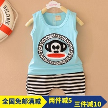 非常乐加依 宝宝夏装 背心T恤短裤童装男女儿童纯棉 套装 大嘴猴