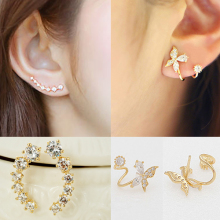 防过敏蝴蝶树叶锆石韩国气质耳钉耳扣耳环超闪女时尚日韩耳饰品
