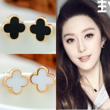 范冰冰同款四叶草黑白耳钉 韩国防过敏耳饰品时尚潮流新品包邮