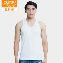 宜而爽男背心全棉透气吸汗中老年汗衫背心纯棉夏宽松运动薄3件装