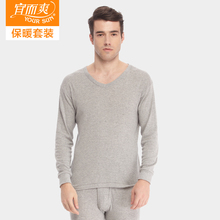 宜而爽厚款加绒保暖内衣套装 男式轻柔轻细羊毛透气防寒打底衫裤