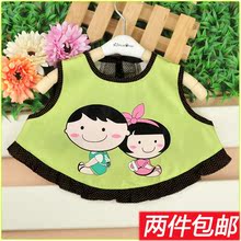 宝宝围裙纯棉防水儿童罩衣反穿衣小孩倒穿衣夏款无袖半袖围兜饭兜