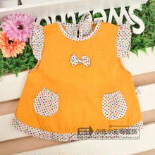 女宝宝围裙罩衣纯棉半袖反穿衣无袖小孩吃饭衣倒穿衣罩衫护衣围衣