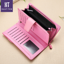 皓顿2017新款女钱包头层牛皮多功能手挽包女长款拉链多卡位手抓包