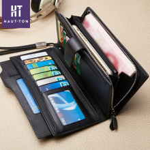 Haut Ton/皓顿男卡包真皮长款多卡位卡包牛皮手机包信用卡钱包
