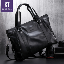Haut Ton/皓顿 真皮男包公文商务手提单肩斜挎横款电脑休闲