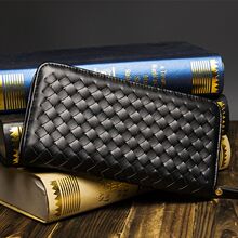 新款男式钱包 韩版潮男简约 编织钱夹中长款包 男士皮夹手抓包