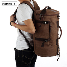 大容量韩版男包双肩包潮 复古帆布男士背包 户外登山旅行包桶包