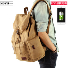 墨一韩版男士背包休闲双肩包旅行包复古帆布包男包学生书包电脑包