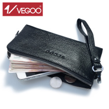 VEGOO手机包牛皮男士长款钱包手拿包 真皮薄皮夹韩版卡包手包零钱
