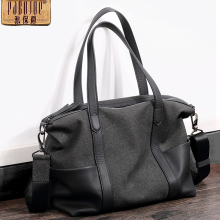 派保爵 男士复古油蜡头层牛皮手提包 时尚商务真皮公文包单肩包男