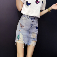 刺绣牛仔半身裙短裙女2017夏季新款百搭韩版破洞学生高腰a字裙潮