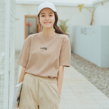 2017春夏新款玫瑰花刺绣字母绣花宽松学院风大板型短袖T恤