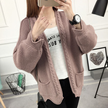 2017春秋新款短款针织衫女士春装长袖小外搭开衫宽松百搭毛衣外套