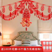 婚房布置道具婚礼装饰品拉花无纺布对联喜字创意卧室客厅拉花套餐