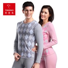 纤丝鸟菱形格保暖内衣套装秋冬季情侣圆领秋衣秋裤加绒