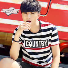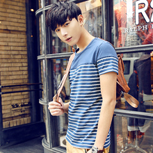 夏装男士短袖T恤 韩版修身条纹半袖男装 圆领体恤半截袖男上衣服