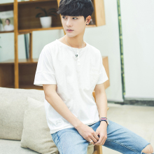 男士亚麻短袖t恤2017春季新款韩版潮流个性小衫圆领半袖体恤衫男