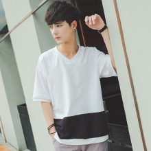 夏季男士短袖T恤 拼色V领男款体恤 夏天男装半袖男潮韩版日系学生