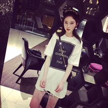 2016春夏装新款韩版纯棉休闲短袖T恤裙女大码宽松长款连衣裙长裙