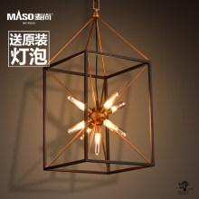 loft铁艺灯方形鸟笼咖啡厅橱窗创意灯酒吧装饰铁架灯艺术吊灯