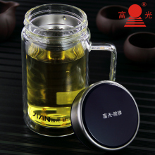 富光双层过滤玻璃水杯 带盖男士大水杯子办公室透明茶杯正品定制